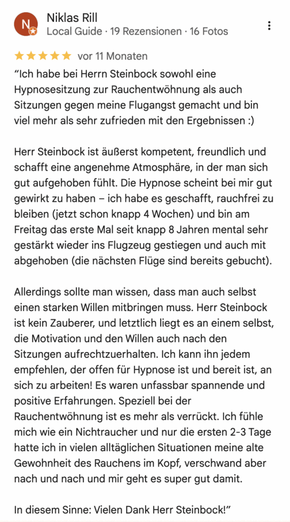 Heute arbeite ich als zertifizierter Hypnose-Coach und wingwave®-Coach in meiner Praxis in Düsseldorf – spezialisiert auf nachhaltige Raucherentwöhnung.